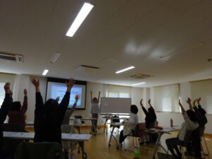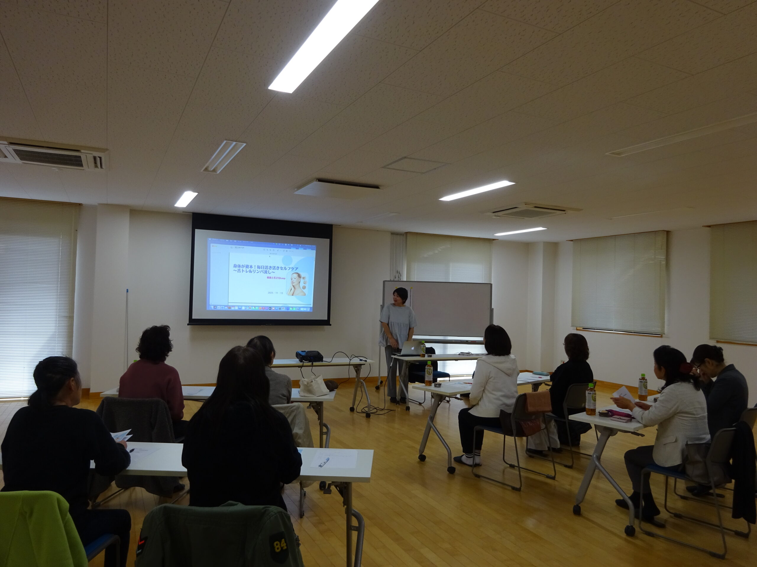 令和7年11月13日(木)、三十刈避難所にて講習会を開催しました。「身体が資本!毎日活き活きセルフケア~舌トレ&リンパ流し~」をテーマに、「サロンてくる」代表であり、健康ハッピースマイルコーチとして活動している荒井美穂氏をお招きし、リンパの流し方を中心にヘッドマッサージや舌トレーニングなどのセルフケアについてお話をいただきました。